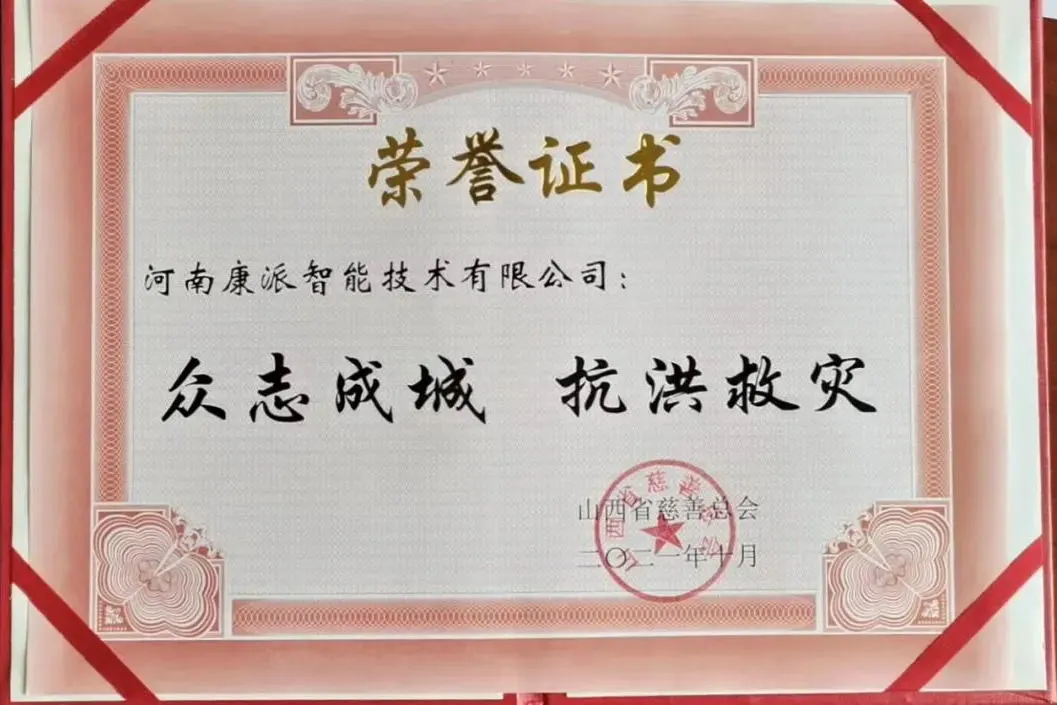 ②2021年8月,康派智能因在防汛救災(zāi)任務(wù)中作出了突出貢獻(xiàn),經(jīng)主管部門認(rèn)定推薦,被收錄進(jìn)《鄭州市防汛救災(zāi)和疫情防控工作社會(huì)信用紅榜名單》,將在政府政策扶持、信用貸款、評(píng)優(yōu)評(píng)先等方面享受惠民便企政策。