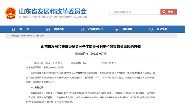 依據(jù)《國家發(fā)展改革委關(guān)于進(jìn)一步完善分時電價機(jī)制的通知》(發(fā)改價格〔2021〕1093號)、《山東省發(fā)展和改革委員會關(guān)于進(jìn)一步完善工商業(yè)分時電價政策的通知》(魯發(fā)改價格〔2021〕986號)、《山東省發(fā)展和改革委員會關(guān)于工商業(yè)分時電價政策有關(guān)事項(xiàng)的通知》(魯發(fā)改價格〔2022〕997號)等相關(guān)工作要求,現(xiàn)將2023年工商業(yè)分時電價公告如下: